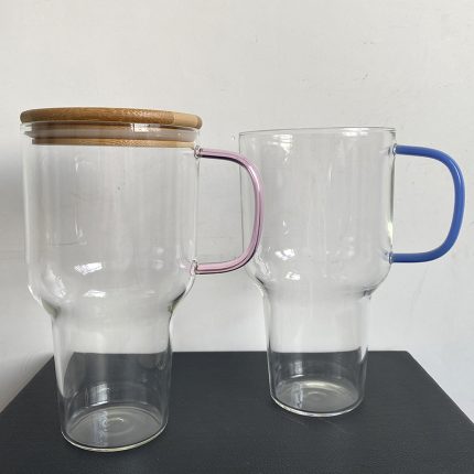 Custom Logo Glass Tumbler with Handle & Bamboo Lid,Travel Mug, Large Glass Cup,Iced Coffee Tumbler
