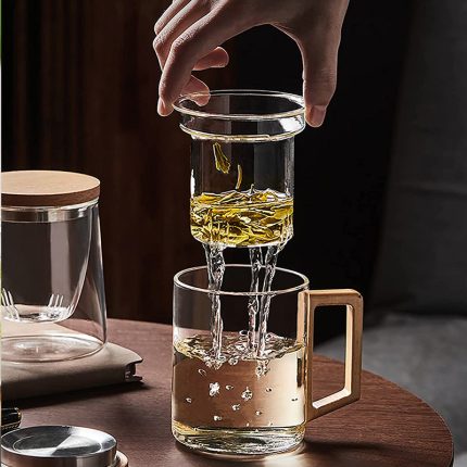 Glass Tea Cup with Infuser and Lid,Borosilicate Drinking Glass,Vertical Striped Glass Cup,Clear Mug for Loose Leaf Tea, Blooming Tea