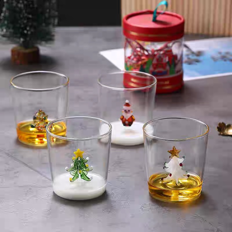 Wholesale & Custom Christmas Tree Mug,3D Drinking Glass Cup,Christmas Glass Coffee Mugs,Santa Claus Drinking Glasses